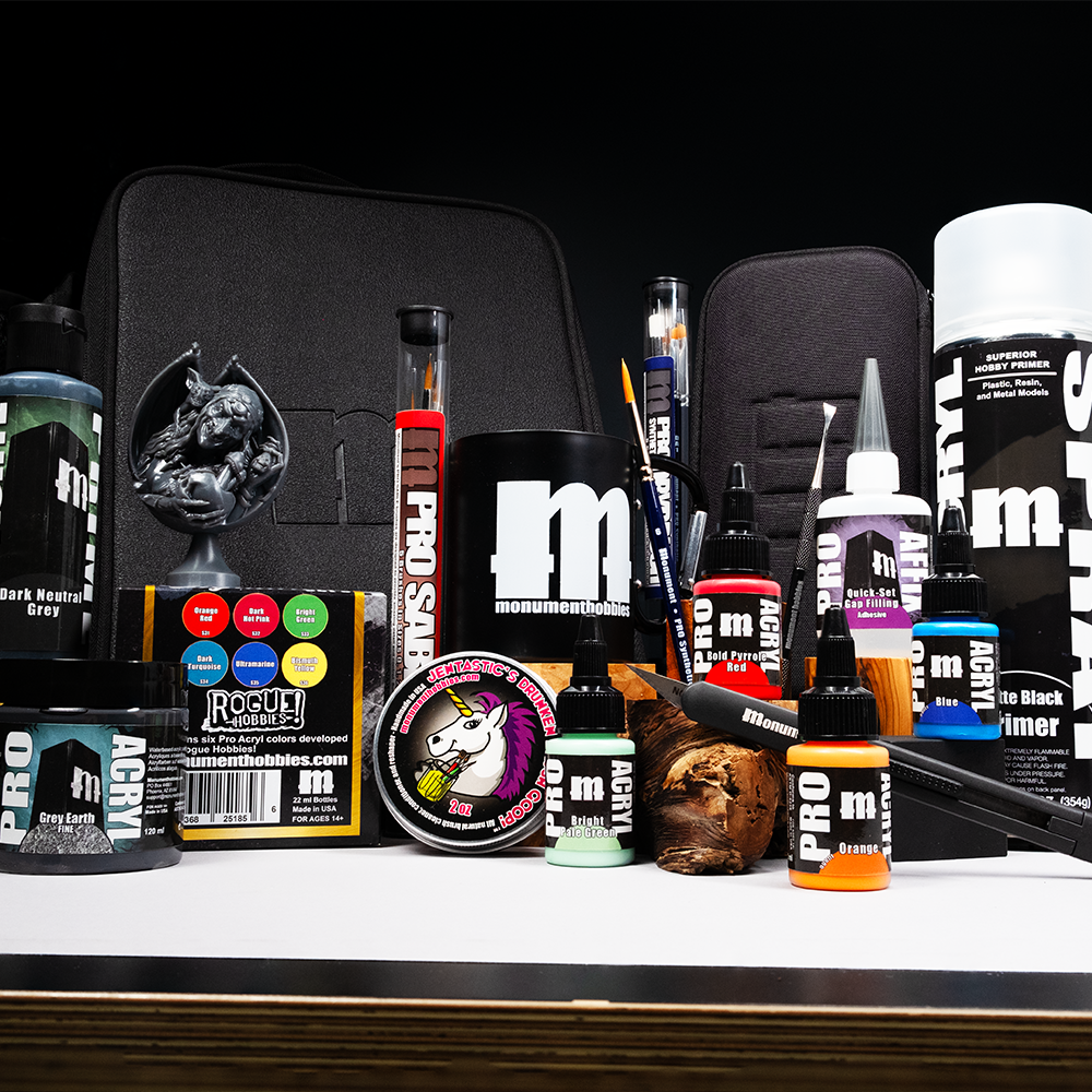From our humble beginnings to now, the Monument mission has stayed true – Inspire creativity by providing the best hobby supplies and education at the best value to artists everywhere. Our dedication to this along with your awesome support of our products has led to steady growth and expansion of our catalog. From our world-renowned Pro Acryl paints and Pro Series brushes, to the amazing Hobby GoBag EVO, and Jentastic's Drunken Brush Goop, you'll find just about anything you need to make the miniature painting hobby better!